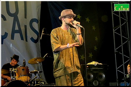 Derrière lui, sur la grande scène, les musiciens de La Cafetera Roja sont déjà installés. Quelques minutes plus tard, les premières notes de ce collectif musical composé de plusieurs nationalités européennes se mettent à retentir.