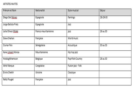 Des musiciens étrangers sont invités tels que: Leïla Olivesi Miské (France-Mauritanie), Diego Del Marao (Espagne), Jorge Batista Prats (Las Palmas), Steve Shehan (France), Hotdog4themoon (Belgique) – Elvira Polyenova-Sheykh ( Ukraine), Marque Athé (Congo), Nelly Pouget (France), Oumar Pen (Sénégal).