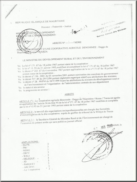 A Thiambène (30 kilomètres de Rosso), un conflit vieux de 1995, a refait surface (voir en fac similé). Un problème foncier avait surgi dans ce village et le droit aurait été dit en faveur des villageois, droit qui a cimenté leur appartenance sur ces terres.