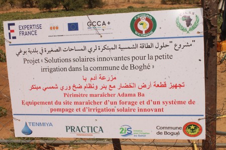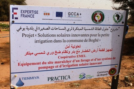 Ce site pilote a été réalisé dans le cadre de la mise en œuvre du projet intitulé « Solutions solaires innovantes pour la petite irrigation dans la commune de Boghé » financé par l’Union européenne et porté par l’initiative Innovations pour une agriculture familiale intelligente face au changement climatique en Afrique de l’Ouest GCCA+ Afrique de l’Ouest (GCCA+ AO) mis en œuvre par Expertise France.