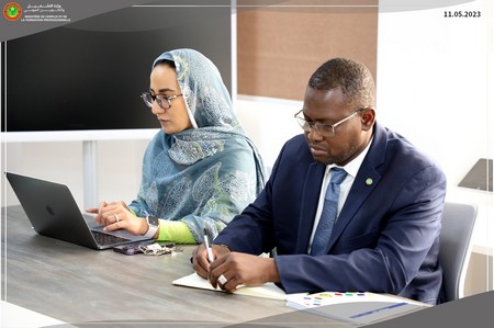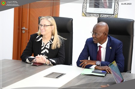 Le Ministre de l’Emploi et de la Formation Professionnelle, Monsieur Niang Mamoudou a reçu, ce jeudi 11 mai 2023, une délégation de la Fondation des États-Unis pour le développement en Afrique (USADF) dirigée par l’Ambassadrice des Etats-Unis en Mauritanie, Madame Cynthia Kierscht et le Président de l’USADF, Monsieur Travis Adkins.