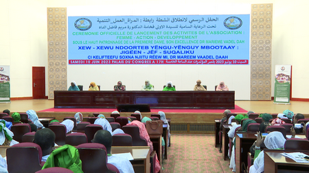 La capitale a abrité ce samedi 10 juin 2023 à l’ancien palais des congrès de Nouakchott, le lancement officiel des activités de l’Association « Jiggen Jef Suqaliku », expression en Wolof qui se traduit comme « Femme-Action-Développement », sous le haut patronage de la première dame, son excellence madame Mariem Mint Mohamed Fadel Dah qui a haussé de sa présence l’événement tout en étant accompagné d’une forte délégation.
